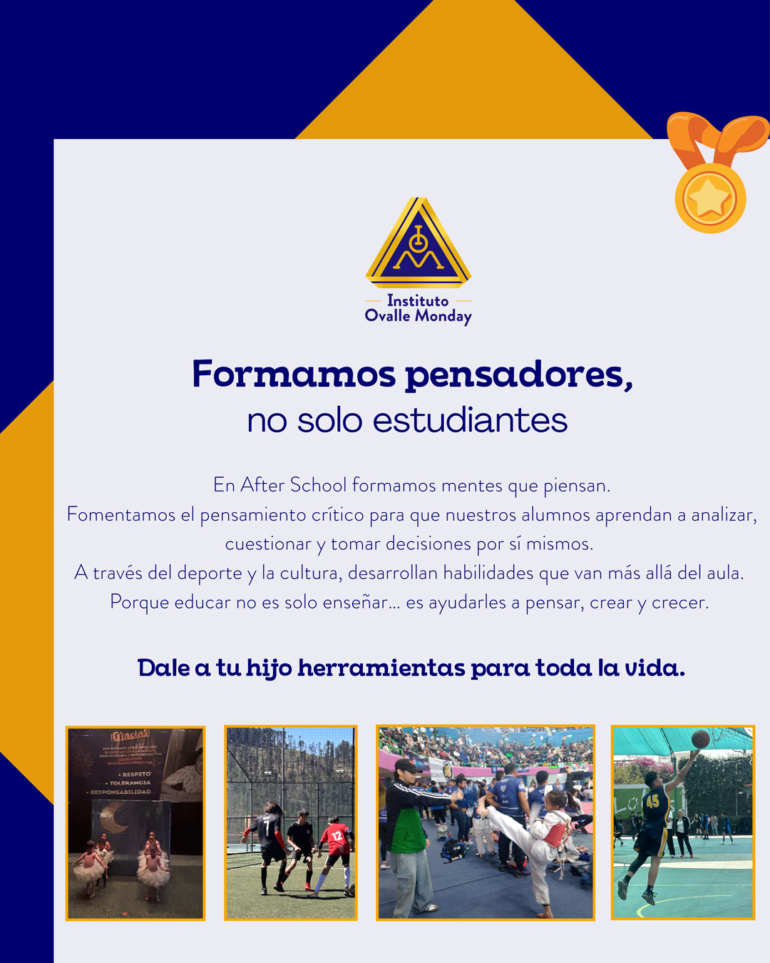 En el Instituto Ovalle Monday complementamos la educación de nuestros alumnos con actividades deportivas, culturales y de idiomas, que de manera opcional, pueden realizar por la tarde. (Actividades y alimentos con costo extra)